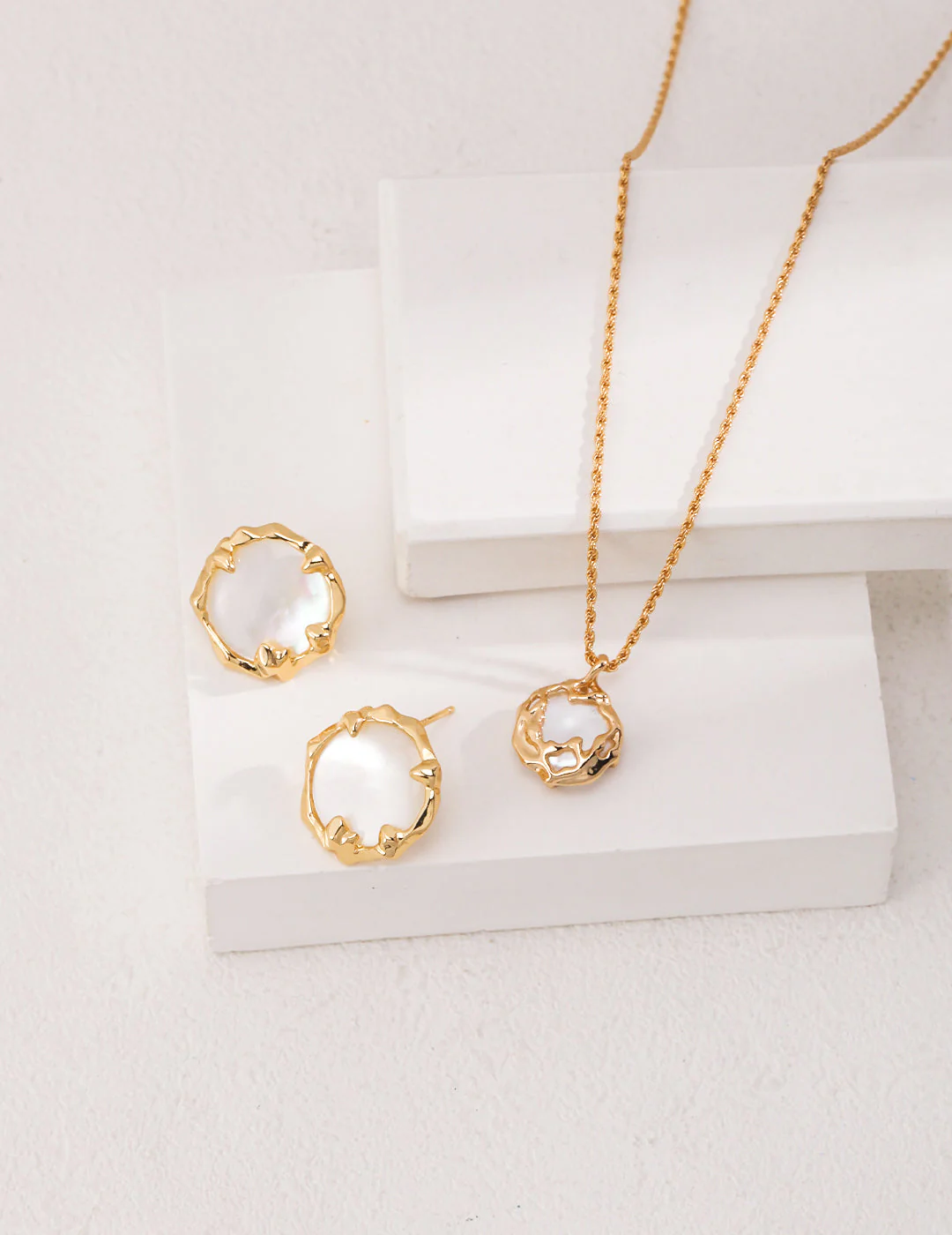Like the first morning sunlight gently touching the white mother of pearl, it shimmers with a soft glow, evoking the call of the ocean, full of mystery and romance. Our hand-carved mother of pearl earrings are like a pair of pearls gathered from the deep sea—crystalline and uniquely captivating.