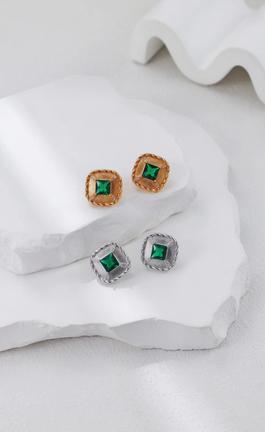 Each earring features a high-quality sterling silver base, plated with 18K gold for a luxurious sheen. The square-cut zircon shimmers brilliantly, mimicking the allure of fine gemstones, while the twisted rope border enhances the vintage aesthetic.